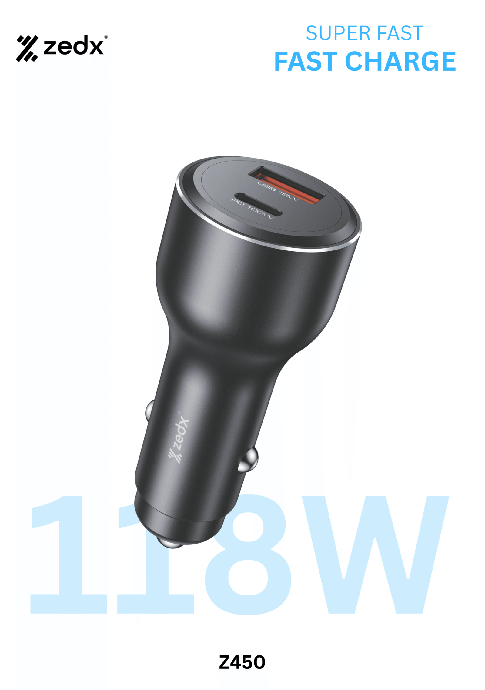 ZedX Z450 118W Super Fast Car Charger